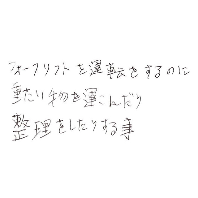 フォークリフトを運転するのに重たい物を運んだり整理をしたりする事