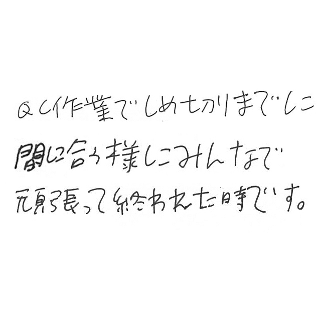 QC作業でしめ切りまでに間に合う様にみんなで頑張って終われた時