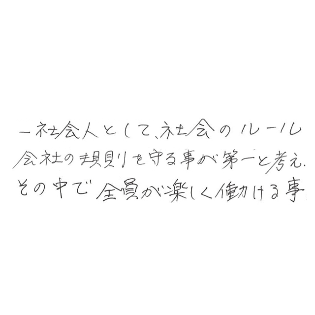 一社会人として、社会のルール、会社の規則を守る事が第一と考え、その中で全員が楽しく働ける事