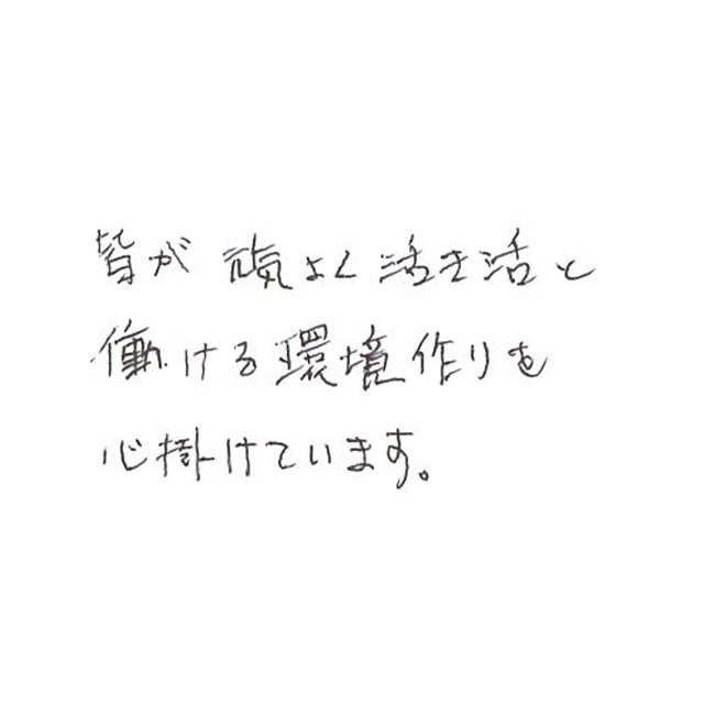 皆が元気よく活き活きと働ける環境作りを心掛けています