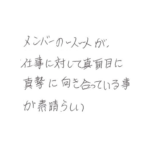 メンバーの一人一人が仕事に対して真面目に真摯に向き合っている事が素晴らしい